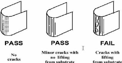 * پس از خم شدن، سطح رنگ برای بررسی ترکخوردگی یا جدا شدن پوشش، بازرسی میشود.